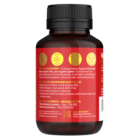Beef Whole Blood, Spleen, Liver Capsules, Certified Organic Grass Fed