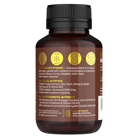 Beef Whole Blood, Spleen, Liver Capsules, Certified Organic Grass Fed