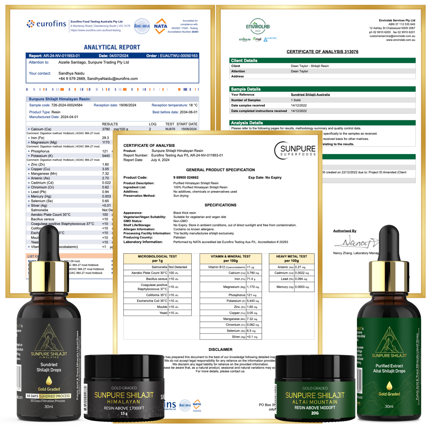 Sunpure Shilajit undergoes rigorous third-party testing. Our gold-grade shilajit is free from heavy metals and contaminants, offering you a safe and effective natural superfood. Choose Sunpure Shilajit for an authentic, superior-quality product.