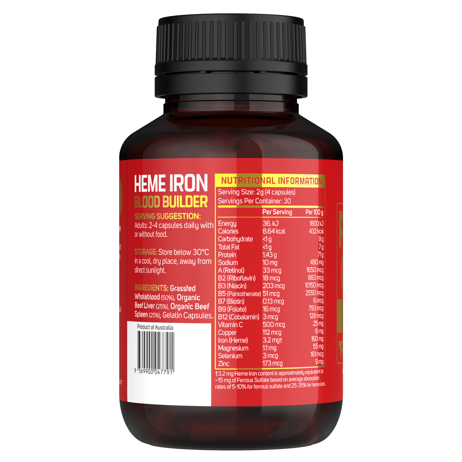 Our Grass Fed Whole Blood is the best source of bioavailable heme iron.